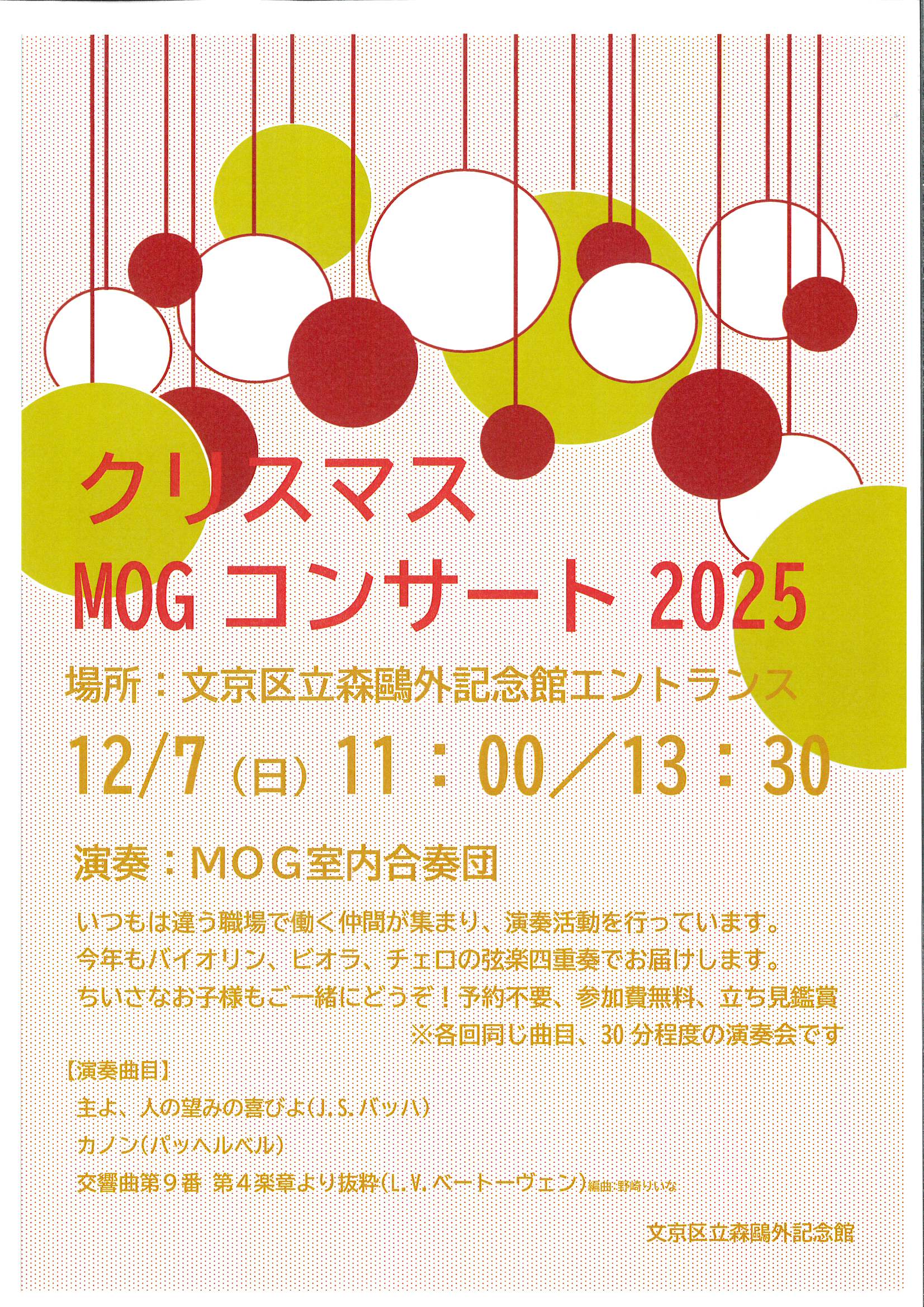 鴎外が留学したドイツにゆかりのあるクラシック音楽を、弦楽四重奏でお楽しみください。※立ち見鑑賞です