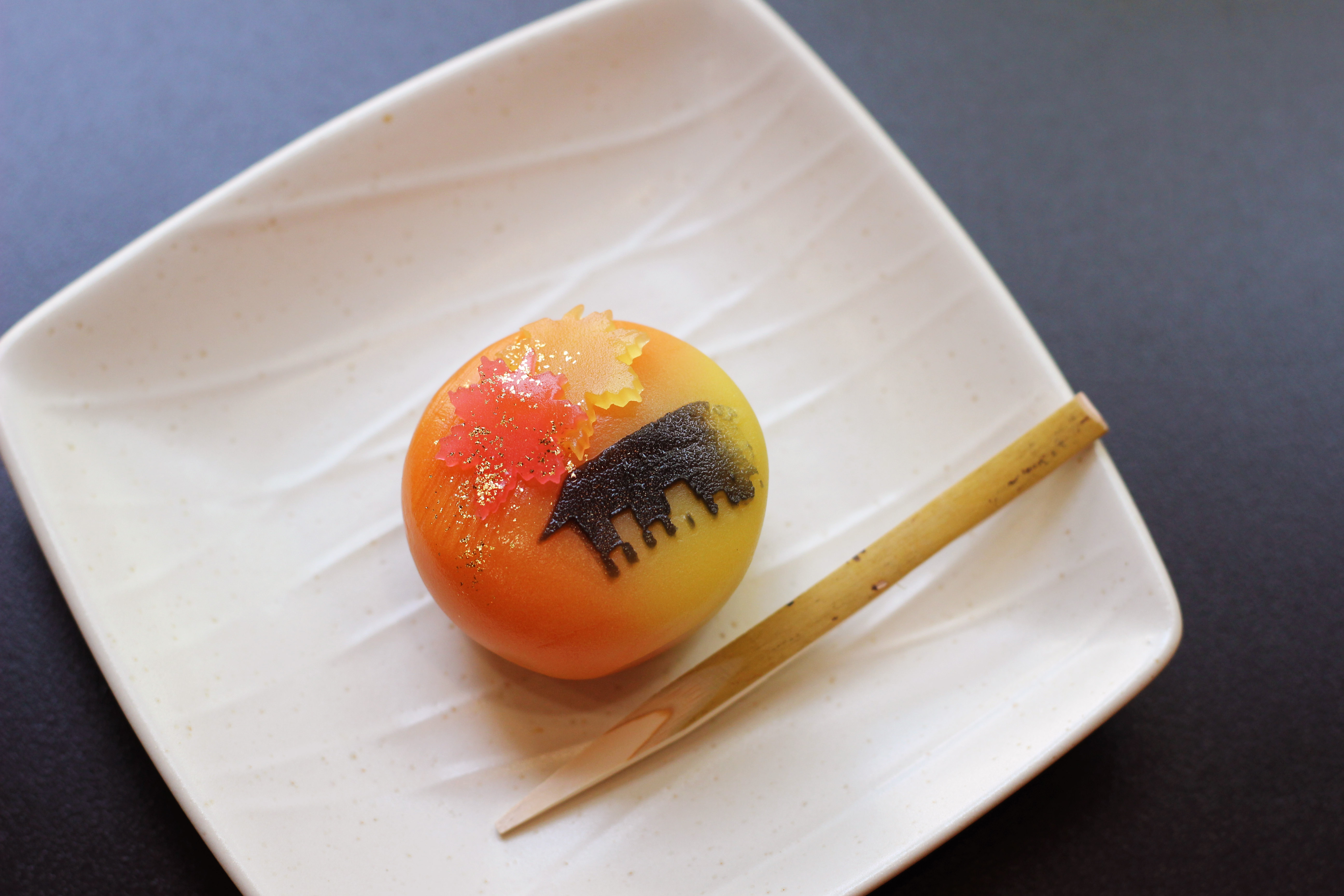 ○モリキネデザート 特別展「鴎外、最後の4年間」にあわせ、鷗外が見た秋の奈良の風景をイメージした和菓子を作りました。千住の和菓子店「喜田家」の繊細な和菓子をお楽しみください。